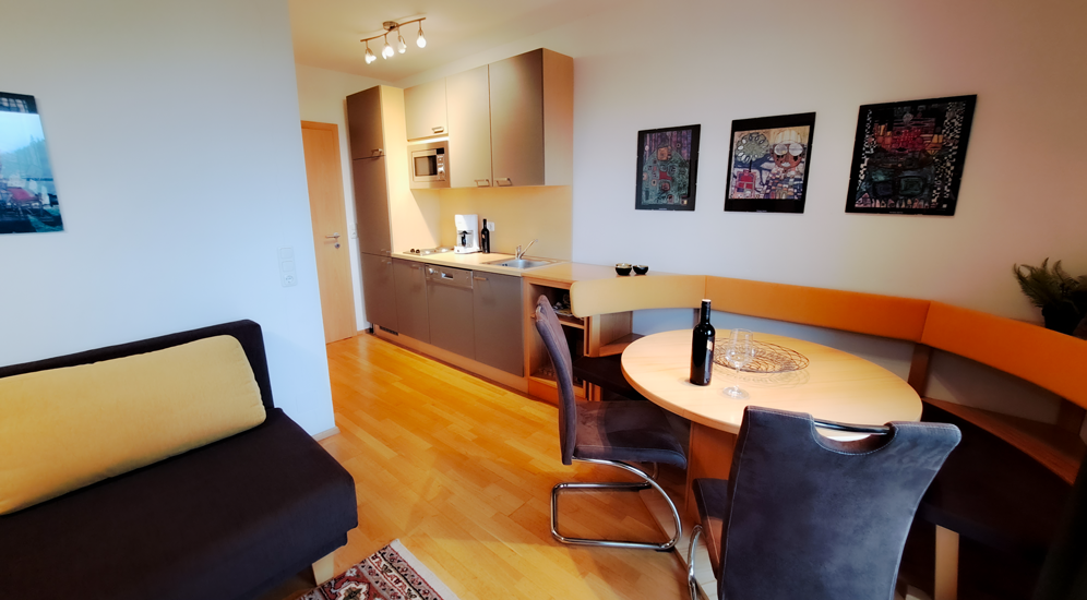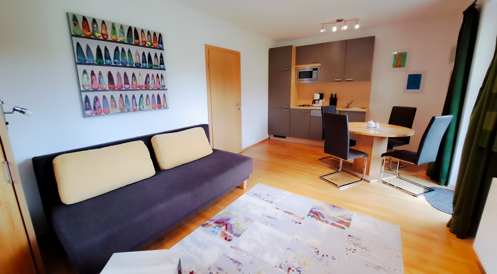 Die Appartements von Haus Gloria sind ideal für 1-4 Personen und bieten eine großzügige Wohnfläche von ca. 45m². Gelegen im Erdgeschoss, sind sie komfortabel ausgestattet und sorgen für einen angenehmen Aufenthalt. Im Untergeschoss steht Ihnen ein Skikeller sowie ein Schuhtrockenraum bzw. Mountainbike-Abstellraum zur Verfügung. Zudem bieten wir Ihnen PKW-Stellplätze für Ihre Bequemlichkeit.